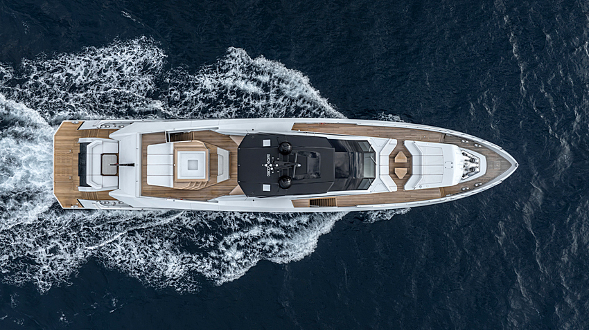 Abaixo da linha de água, o seu casco de deslocamento rápido oferece um equilíbrio convincente entre velocidade e eficiência. Com uma velocidade máxima de 22,6 nós e uma velocidade de cruzeiro de 20 nós, proporciona grande autonomia sem comprometer o conforto. O calado reduzido de apenas 2,1 metros aumenta ainda mais a sua versatilidade, permitindo explorar zonas de navegação desde as Bahamas até fundeadouros mais remotos e pouco profundos.
