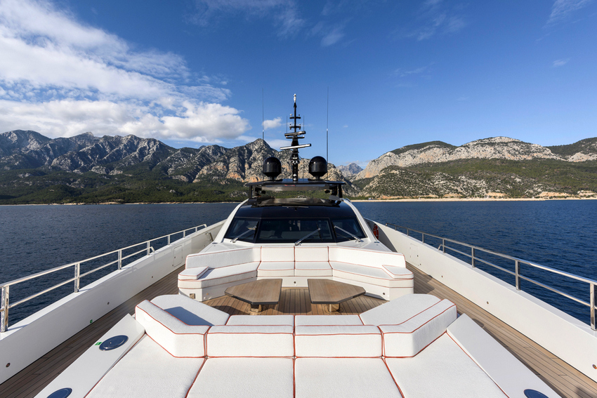Os espaços exteriores do Ximena foram concebidos com um objetivo claro: usufruto sem esforço. O amplo sundeck, com mais de 50 metros quadrados, combina zonas sombreadas sob um elegante hardtop preto com áreas abertas para banhos de sol em torno do jacuzzi. Um bar totalmente equipado, amplos assentos e um grande ecrã retrátil transformam o espaço de refúgio diurno em cenário para eventos ao entardecer, enquanto dois assentos de pilotagem proporcionam uma experiência privilegiada durante a navegação.