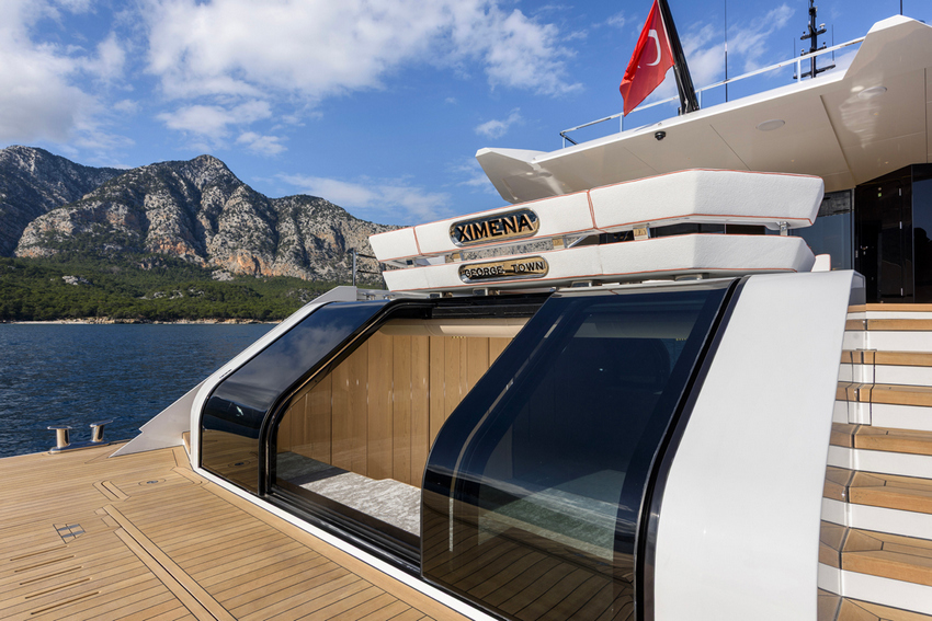 O Ximena reflete também as vantagens práticas de uma construção totalmente personalizada. A garagem a meio-navio acomoda um tender de 6,5 metros, com manuseamento facilitado para a tripulação, enquanto os sistemas e layouts a bordo são ajustados com precisão às necessidades operacionais do proprietário. O iate dispõe ainda de alojamento para oito tripulantes, garantindo o nível de serviço esperado numa embarcação desta categoria.