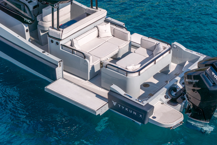 Apesar do seu ADN militar, o TYKUN X não foi feito apenas para a velocidade — é também uma plataforma de lazer multifuncional, ideal para transferências de hóspedes ou dias descontraídos no mar.