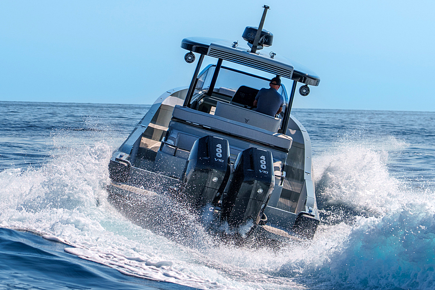 E nota-se. Fora do porto, percebe-se rapidamente que as limitações que travam outros chase boats não se aplicam ao TYKUN X. Em condições calmas, com quatro passageiros e 400 litros de combustível a bordo (meia carga), o barco já alcançou 52 nós com dois motores Mercury Verado 400, podendo atingir 55 nós com uma motorização mais potente.