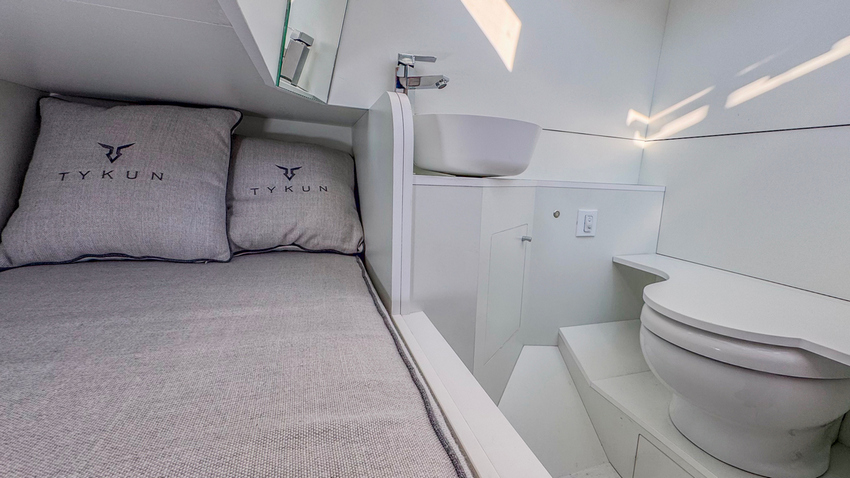 “É leve, fiável, fácil de reparar e reciclável”, explica Iovane. “Mas acima de tudo, permite um elevado grau de personalização: cada detalhe do layout pode ser ajustado às necessidades do proprietário. Além disso, o TYKUN tem origem num casco militar, já testado nesse contexto, e a sua navegabilidade é excecional.”