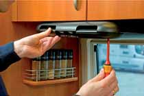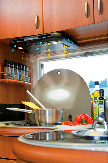 Com um consumo de energia extremamente reduzido de apenas 5 W, o aparelho com patente registada mostra-se extraordinariamente eficiente. Do equipamento da Dometic CK 2000 faz parte um filtro de gordura lavável, bem como um filtro de carvão activado facilmente substituível.