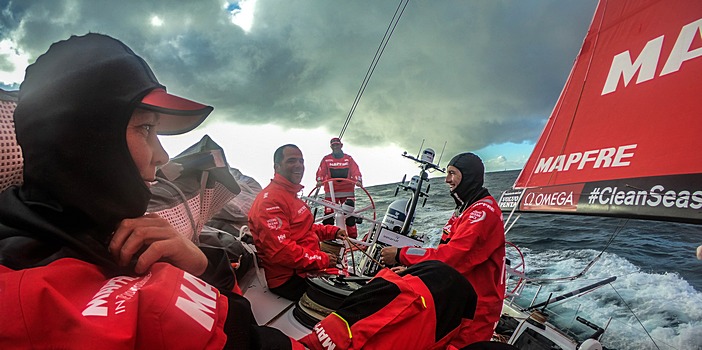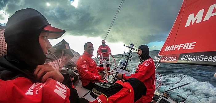 O skipper do MAPFRE, Xabi Fernandez, a apenas oito milhas atrás de Dongfeng, acrescentou: “Será difícil e frio, mas vamos-nos divertir“.