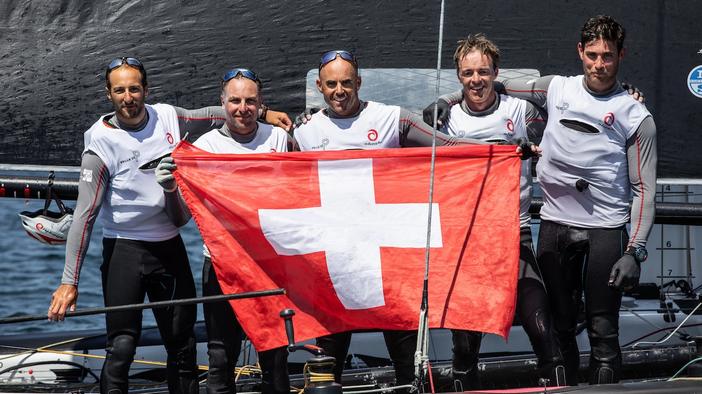 Arnaud Psarofaghis, Nicolas Charbonnier, Nils Frei, Yves Detrey e Timothé Lapauw velejaram praticamente sem falhas durante o evento, conquistando a terceira vitória em quatro Acts já realizados na época de 2018. Os suíços, que chegaram a Cascais empatados em pontos com os dinamarqueses da SAP Extreme Sailing Team, ficaram contentes por se distanciarem novamente na liderança.