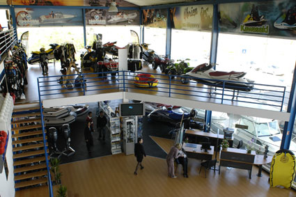 Este espaço está estudado em 3 níveis de exposição e uma cave ampla para guardar barcos, inclui loja de peças, bem como uma oficina de assistência pós venda completamente equipada. Integra ainda uma área de recepção a clientes onde encontramos um simulador de moto de água.
