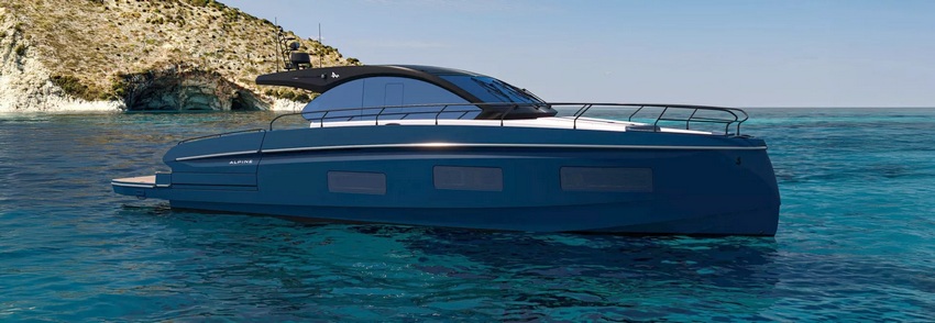 As linhas exteriores — baixas, alongadas e desportivas — evocam os códigos de design da Alpine, preservando ao mesmo tempo a identidade do Gran Turismo 50 como sport-cruiser concebido para equilíbrio e facilidade de circulação. A ligação entre os espaços interiores e exteriores mantém-se fluida e natural, reforçando a posição da gama Gran Turismo como referência na náutica desportiva contemporânea.
