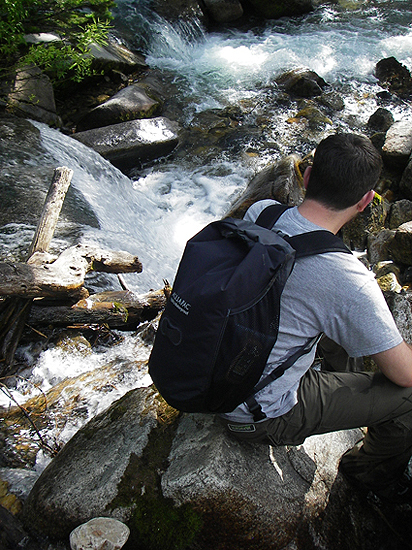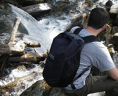 Esta mochila da Aquapac está vocacionada para uma infinidade de utilizações seja na praia, em canoa, de bicicleta ou a passear na montanha. Tem a particularidade de poder separar a sua roupa húmida e seca (suja ou limpa) num saco espaçoso o que é uma grande vantagem. Quando fechada tem uma dimensão de 54 cm de altura x 30 cm de largura.
