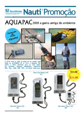 A empresa Nautiradar, importadora da marca Aquapac apresenta desde o dia 1 de Julho uma promoção especial de Verão na gama mais recente das bolsas estanques da reconhecida marca inglesa. Não perca esta oportunidade de obter a sua unidade a um preço apelativo encomenda já antes que esgote. Esta campanha termina a dia 30 de Agosto de 2008.Mais informações em www.nautiradar.pt