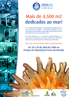 A APDM – Associação Portuguesa para a Dinamização do Mergulho (www.apdm.org.pt) em colaboração com o Fórum de Mergulho (www.forum-mergulho.com) está a organizar a 2ª Edição do Salão de Actividades Subaquáticas Exposub Portugal 2008 que irá realizar-se nos dias 18 a 20 de Abril de 2008, no Parque de Exposições do Montijo.