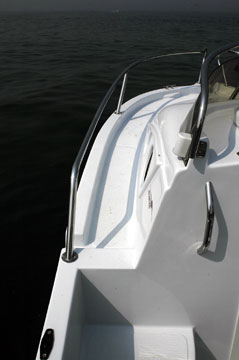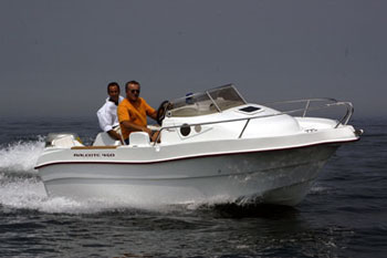 O Baleote 460, equipado com um motor Honda de 50 Cv, destina-se a todos aqueles que pretendem iniciar-se no pequeno cruzeiro. A cabina de apoio situada à proa permite idealizar outros projectos de passeio. Visualmente este modelo segue as tendências do que se faz lá fora neste segmento de mercado. Os acabamentos são bons e os pormenores demonstram um cuidado por parte do fabricante. Também neste modelo o navegar foi suave e em virtude da configuração do casco, o barco praticamente não adornava. O arranque é eficaz e em apenas 2,72 segundos estamos a planar, a velocidade máxima foi de 23,8 nós às 6 000 rpm e a velocidade de cruzeiro de 19 nós às 5 000 rpm.