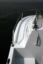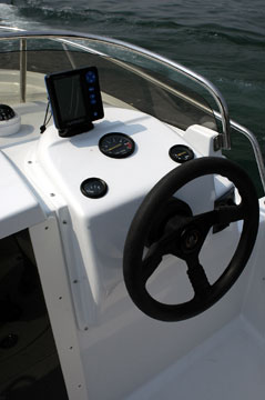 A navegação neste modelo foi uma agradável surpresa, com três adultos a bordo e com um mar calmo planámos em apenas 2,75 segundos. A velocidade máxima que conseguimos atingir foi de 20,3 nós às 5 500 rpm enquanto que a velocidade de cruzeiro se situou nos 12,5 nós às 4 500 rpm. A suavidade de condução e a capacidade de curvar foram outros dos pontos que nos deixaram bem impressionados.