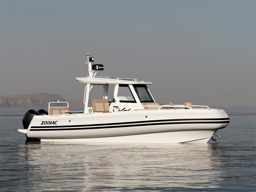 A Zodiac é uma referência no segmento de RIBs, desde tenders até à grande linha XXC. Ao bem-sucedido modelo X10CC, com 10 metros, junta-se agora a alternativa mais compacta X9CC. Até 15 pessoas podem desfrutar das vantagens de um RIB com casco rígido e tubos de borracha num comprimento de 8,60 metros: rápido, manobrável, seguro e estável. A consola central coberta é protegida à frente por um para-brisas com limpa-vidros. O posto de comando com dois lugares situa-se a estibordo, enquanto a bombordo existe uma cabine dupla com janelas superiores e casa de banho separada. As zonas de solário à proa e à popa podem ser convertidas de área de estar com mesa em zonas de banhos de sol. Um chuveiro manual está instalado à popa e um guincho elétrico de âncora à proa. O degrau de entrada e o corrimão facilitam uma circulação segura a bordo. Os dois motores fora de borda de 250 cv são alimentados por um depósito de 620 litros, garantindo autonomia para longos passeios diurnos. Estão disponíveis vários acabamentos de pintura, do branco ao cinzento militar. Qualquer que seja o estilo escolhido, com o X9CC obtém-se sempre a proverbial qualidade Zodiac. Zodiac, Pavilhão 9/C42