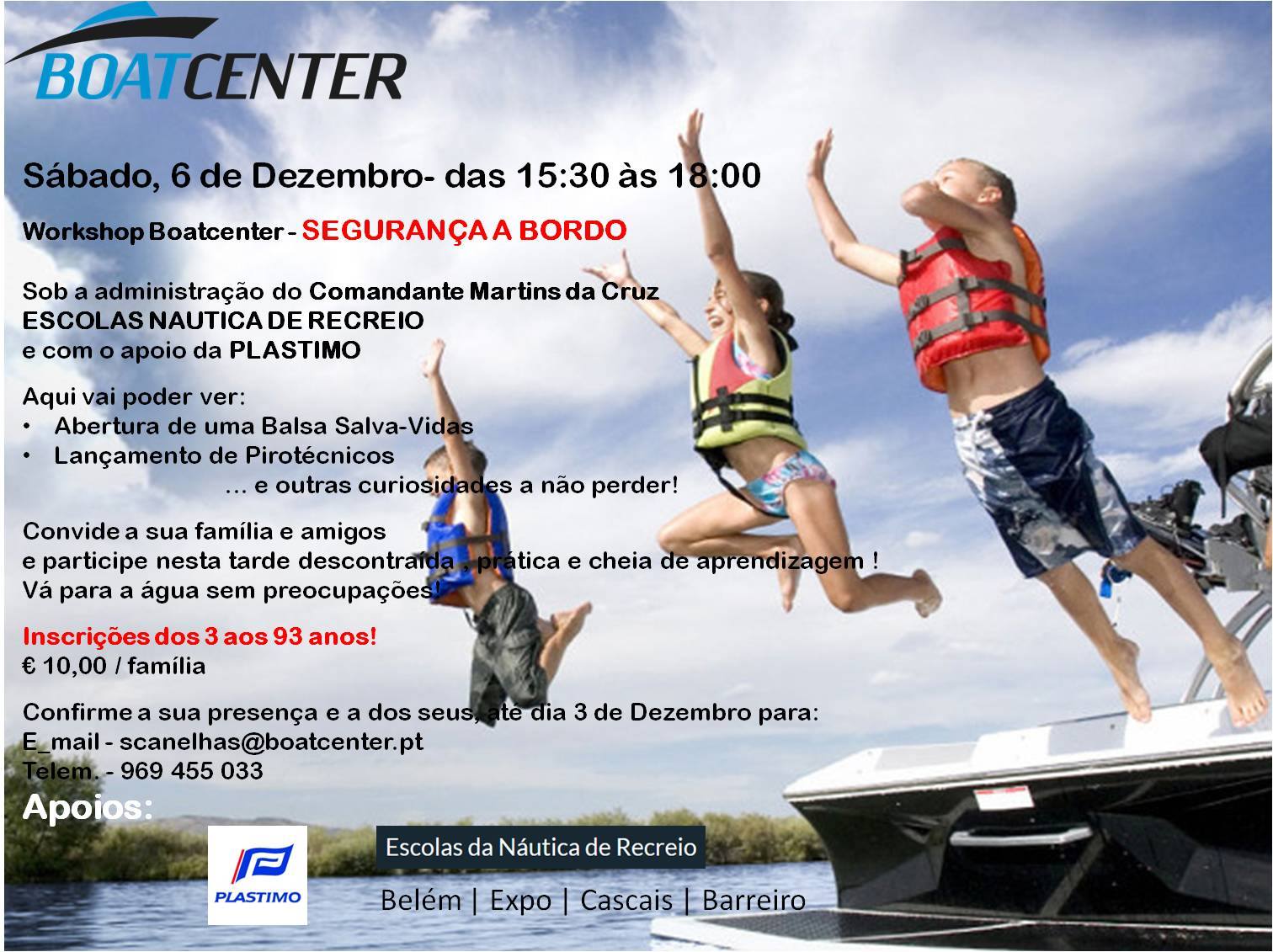 A empresa Boat Center vai organizar no próximo dia 6 de Dezembro, em Setúbal, um workshop dedicado à segurança a bordo. Esta iniciativa conta com a participação do comandante Martins da Cruz/Escolas Náuticas de Recreio e com o apoio da Plastimo. Durante os trabalhos, vai poder assistir à abertura de uma balsa salva-vidas, participar no lançamento de pirotécnicos…entre outras.