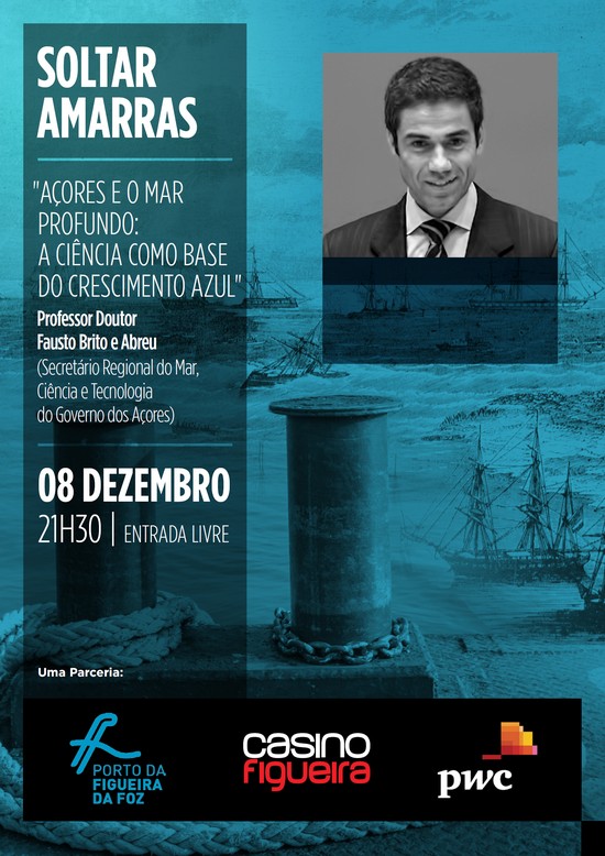 O Casino Figueira, juntamente com a Administração do Porto da Figueira da Foz (APFF) e a Price Waterhouse Coopers, inicia, no dia 8 de dezembro, um ciclo de três conferências sob o lema Soltar amarras. A primeira sessão, que decorre pelas 21H30, tem como convidado Fausto Brito e Abreu, secretário Regional dos Açores do Mar, Ciência e Tecnologia, que abordará o tema Açores e o mar profundo: a ciência como base do crescimento azul.
