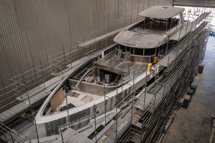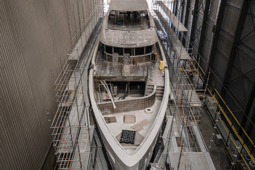 Assinalando um marco importante na expansão contínua da marca no segmento dos superiates, o 42M encontra-se atualmente na fase de pintura, com o casco e a superestrutura quase concluídos. A instalação dos principais sistemas está em curso — incluindo os motores principais —, enquanto os trabalhos de carpintaria e decoração interior avançam em paralelo.