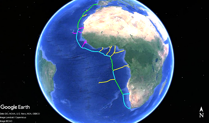 O Cabo Submarino Equiano deverá começar a operar em 2022 e terá uma extensão total de 15.000 Km, ligando Portugal à África do Sul, com várias ligações intermédias a Accra (Gana), Lagos (Nigéria), Swakopmund (Namíbia) e Santa Helena (Rupert’s bay). A amarração do cabo em território nacional será realizada na praia da Califórnia em Sesimbra e ligará à Estação de Cabos Submarinos já existente nesta localidade, ligando-se depois ao backbone terrestre.