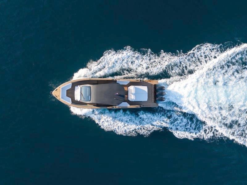 A motorização tripla fora de bordo, com uma potência total de 1.200 cv, é assegurada por motores Mercury Verado, permitindo atingir 55 nós de velocidade máxima; em alternativa, podem ser instalados três motores Yamaha XTO de 450 cv, aproximando o desempenho dos 60 nós.