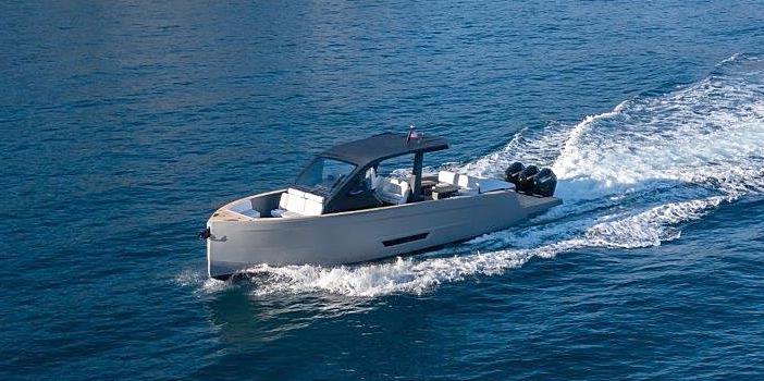 A motorização tripla fora de bordo, com uma potência total de 1.200 cv, é assegurada por motores Mercury Verado, permitindo atingir 55 nós de velocidade máxima; em alternativa, podem ser instalados três motores Yamaha XTO de 450 cv, aproximando o desempenho dos 60 nós.