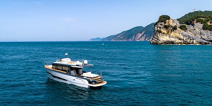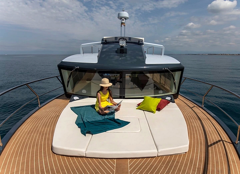 O modelo Evolution 6.0 é um inovador “Sport Trawler” onde o espaço e a luminosidade dos ambientes são os protagonistas. Sentado no confortável sofá externo é possível ver o mar na proa sem barreiras visuais que atrapalhem a perceção do espaço. Um novo conceito de navegação, onde os ambientes externo e interno se fundem criando grandes espaços de convívio e dando uma sensação de espaço nunca antes experimentada. O Evolution 6.0 oferece soluções típicas de iates de tamanhos decididamente maiores, como o grande salão externo coberto e habitável, e o compartimento lateral do tender que se torna uma grande plataforma de banhos. A distribuição racional dos interiores permite escolher entre diferentes configurações de equipamentos e motores, oferecendo também o motor de popa, absolutamente inovador para a categoria.