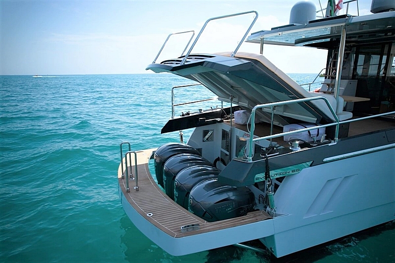 O seu mais recente lançamento é o modelo Evolution 6.0 (17,65 m de comprimento) que é motorizado com 4 x 425 Cv da Yamaha.