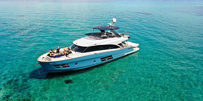 Sharing its DNA with the 45 Fly, the Coupe boasts naval architecture by J&J Design and an interior by Italian Marco Casali of Too Design. As well as a range of twin shaftdrive engine options with or without Hybrid Drive, the boat is available with Volvo Penta IPS600 (twin 440hp) for a top speed of 30 knots.