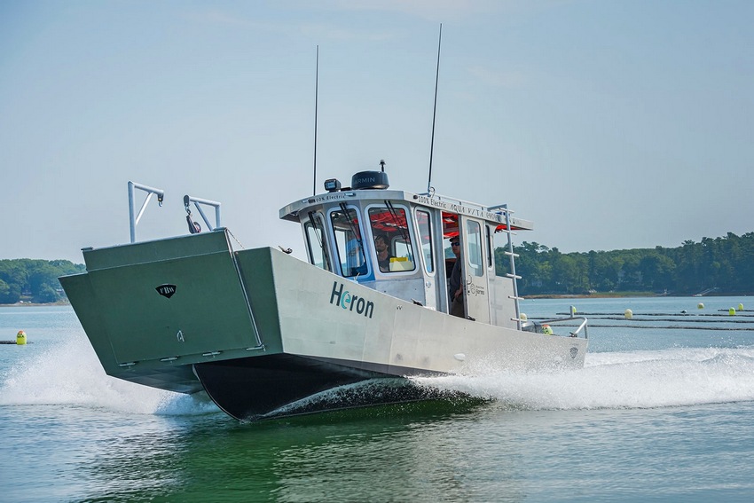 Construída especificamente para as exigências da aquicultura oceânica — incluindo transporte de ostras/alga, manuseamento de equipamentos, apoio à tripulação, mergulho e investigação — a nova embarcação é propulsionada por dois motores fora de borda elétricos Evoy Vita de elevado binário. Concebida por Patrick Fogg e construída pela Fogg’s Boatworks, sediada no Maine, a embarcação combina o artesanato tradicional com a propulsão marítima de nova geração.