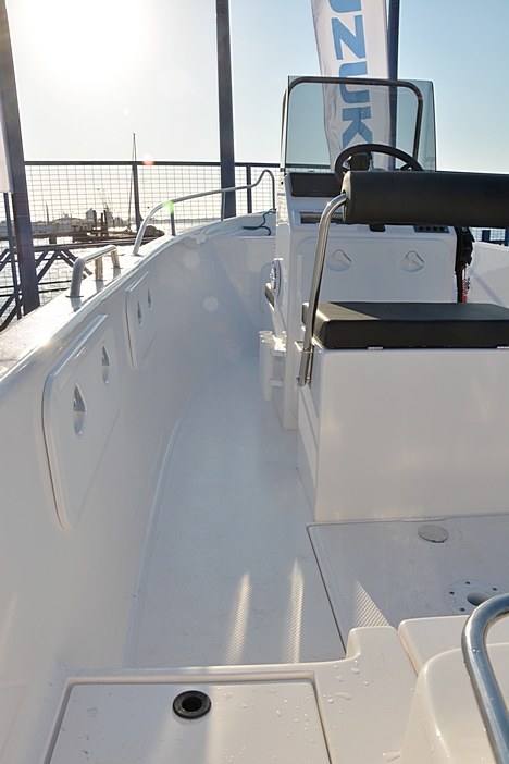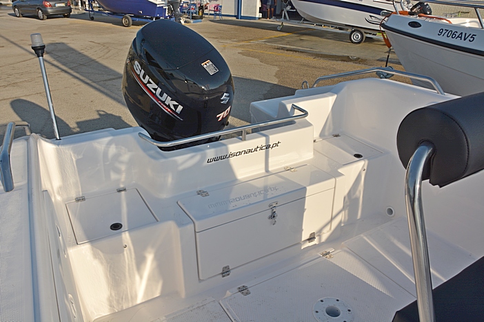 O Isonautica 550 Master possui o mesmo conceito barco e utilização do modelo 570 Açor (ver em https://www.nauticapress.com/isonautica-570-acor-um-barco-simples-e-versatil/) que já tivemos a oportunidade de experimentar. Trata-se de um barco de consola central com motor fora de borda com diversos espaços para arrumos distribuídos ao longo do barco (à proa, na consola, no banco da consola e junto ao painel de pôpa). A consola é envolvente, equipada de pega-mão em todo o seu redor e com uma dimensão que protege apenas o piloto. Dispõe de espaço suficiente para a instalação de sistema de som, equipamentos de ajuda à navegação e de controlo do motor. O banco da consola não é regulável em altura, possui encosto móvel e, no seu interior tem um espaço para arrumo.
