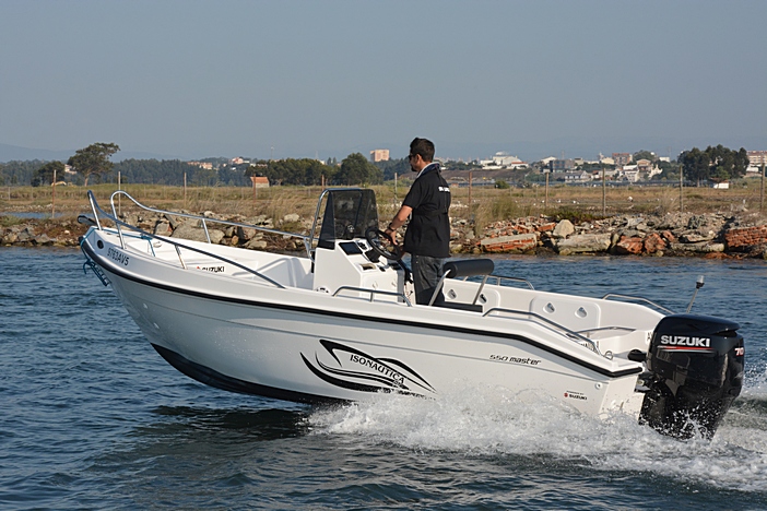 Modelo: 550 Master | Origem: Portugal | Construtor: Isonautica | Comprimento: 5,53 m | Boca: 2,10 m | Peso s/motor: 675 Kg | Deslocamento máx.: 1 300 Kg | Calado: 0,24 m | Potência máx.: 60 kW | Categoria: C | Carga máx.: 652 Kg | Lotação: 6 | Preço do barco: 9 655,50 Euros | Preço do barco c/motor Suzuki DF70 ATL preto: 21 445,00 Euros (c/IVA) | Comercialização: Isonautica / http://www.isonautica.pt/index.php