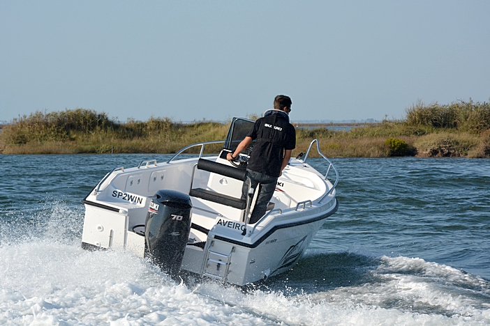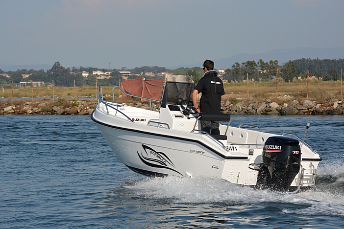 Também a navegar o conjunto 550 Master / Suzuki DF70 ATL mostra qualidades idênticas às dos 570 Açor/ Suzuki DF90 ATL. A boa relação peso/potência permitiu um arranque ainda mais rápido do que com o 570 Açor. Com três adultos a bordo, planámos em apenas 1,53 segundos e atingimos as 5000 rpm em 6,44 segundos a fazer 25.5 nós. A boa capacidade de manobra, a sensação de segurança mesmo em curva e a velocidade fazem deste conjunto uma boa opção para quem gosta de navegar.