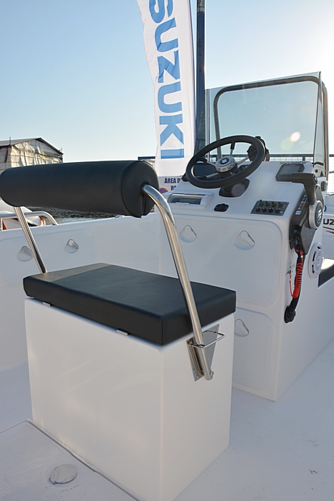 O Isonautica 550 Master possui o mesmo conceito barco e utilização do modelo 570 Açor (ver em https://www.nauticapress.com/isonautica-570-acor-um-barco-simples-e-versatil/) que já tivemos a oportunidade de experimentar. Trata-se de um barco de consola central com motor fora de borda com diversos espaços para arrumos distribuídos ao longo do barco (à proa, na consola, no banco da consola e junto ao painel de pôpa). A consola é envolvente, equipada de pega-mão em todo o seu redor e com uma dimensão que protege apenas o piloto. Dispõe de espaço suficiente para a instalação de sistema de som, equipamentos de ajuda à navegação e de controlo do motor. O banco da consola não é regulável em altura, possui encosto móvel e, no seu interior tem um espaço para arrumo.