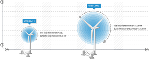 Esta tecnologia permite a exploração do potencial eólico no mar, em profundidades superiores a 40 metros, assentando no desenvolvimento de uma plataforma flutuante triangular e semi-submersível, com origem na indústria de extracção de petróleo e de gás, onde assenta uma turbina eólica com vários megawatts (MW) de capacidade de produção.