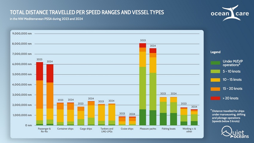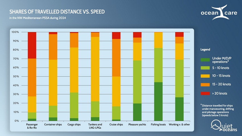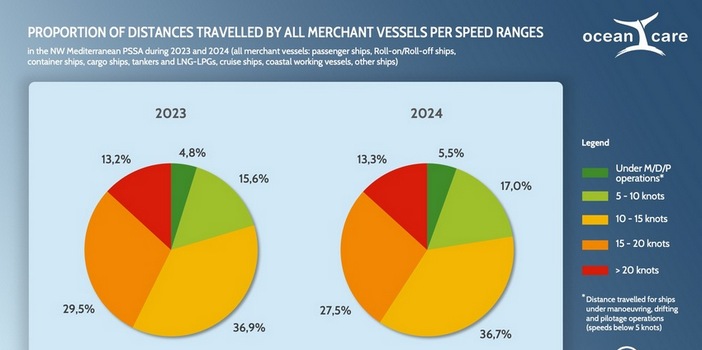 De acordo com os dados da análise – realizada pela Quiet Oceans e encomendada pela OceanCare – o comportamento global da navegação, especialmente em termos de velocidades médias, manteve-se estável em ambos os anos. Dos quase 48 milhões de quilómetros navegados por todos os navios nas águas desta PSSA em 2023 e 2024, 57% do total foi a velocidades acima de 10 nós, sem variações significativas entre os dois anos (56,9% em 2023 e 57,5% em 2024).