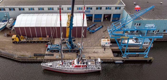 It was anything but a dull Monday morning in Makkum. While most of the villagers were still sleeping, at 06:00 AM the yard of KM Yachtbuilders was already abuzz with activity. This is the day when the expedition vessel Pelagic 77 was launched. Her two carbon masts were set immediately after the launch. Her official name is now ‘Vinson of Antarctica’, after the highest mountain on the Antarctic continent.