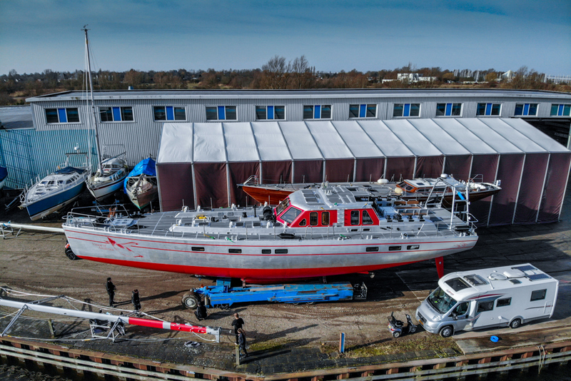 The vessel has been under construction at KM Yachtbuilders since early in the summer of 2019 and work will be continuing for a few weeks after the launch on the finishing, commissioning and of course the sea trials. This will take place on the North Sea and the first trip will be to Norway. After the summer, the crew plans to sail to South America, ending at Puerto Williams in Chile, the southernmost inhabited place in the world.