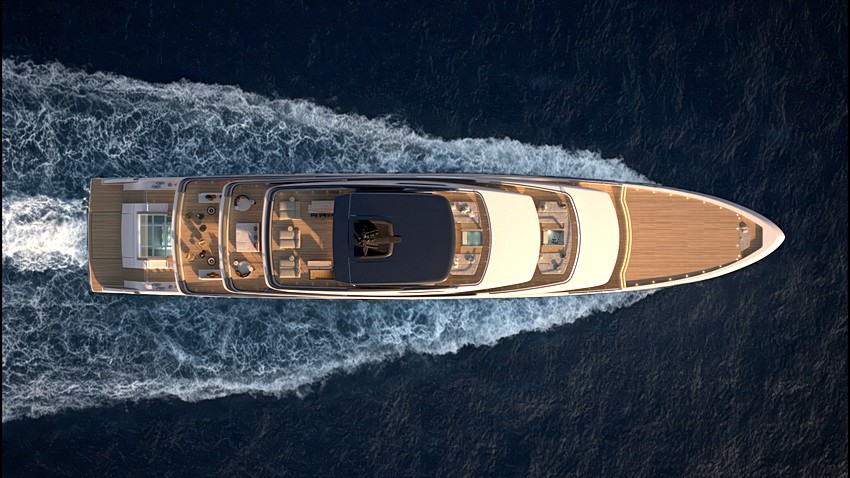 “Este projeto marca uma verdadeira mudança de escala”, afirma o arquiteto Bernardo Zuccon. “O design exterior é fruto de um longo processo de investigação estilística, através do qual abraçámos uma dimensão nunca antes explorada pelo estaleiro — uma verdadeira expressão das machines à habiter, para citar as célebres palavras de Le Corbusier.”