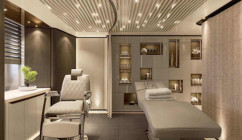 Isto é especialmente visível no amplo beach club e nas zonas de spa, significativamente maiores do que as de um iate convencional de tamanho semelhante.