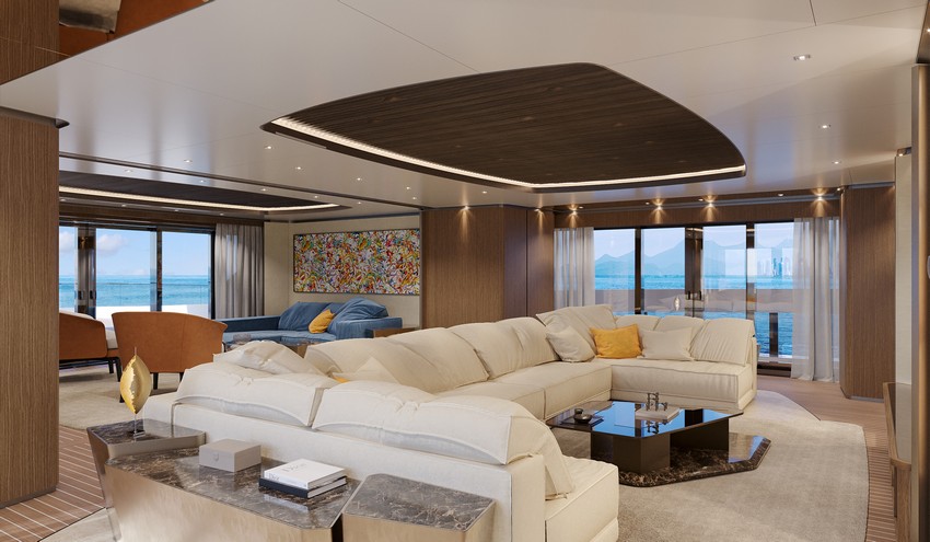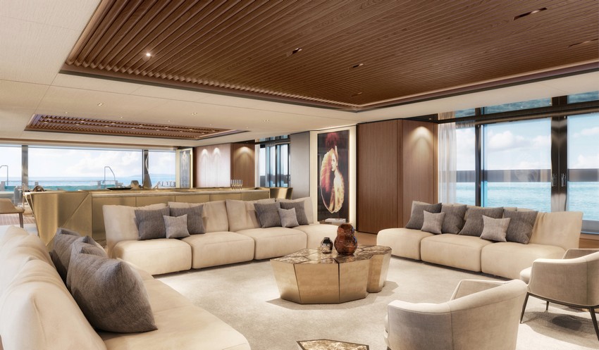 – Experiência a bordo sem precedentes: um deck do proprietário com 300 m², um beach club inundado de luz natural, que se estende até cerca de 290 m² ao nível do mar, e salões luminosos com vistas panorâmicas desobstruídas.