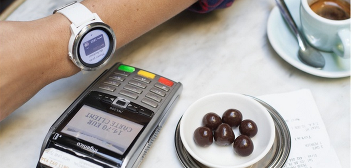 Esta tecnologia ajuda-nos a pagar de uma forma simples e intuitiva numa loja, quiosque ou restaurante, através de um serviço contactless. Tudo isto da forma mais higiénica possível, uma vez que não teremos de tocar no dinheiro ou em qualquer objeto ou dispositivo, nem sequer procurar a sua carteira. Basta colocar o relógio próximo do terminal de pagamento, sem tocar no leitor, porque basta aproximá-lo.