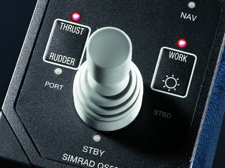 Controlo simples e rápido é a principal vantagem da Simrad: carregando no joystick efectua-se a primeira mudança de rumo; pressionando e mantendo faz-se uma quinta mudança. O novo QuickStick funciona apenas com os pilotos AP50 e AP50+. A marca Simrad é representada em Portugal pela empresa Nautel.
