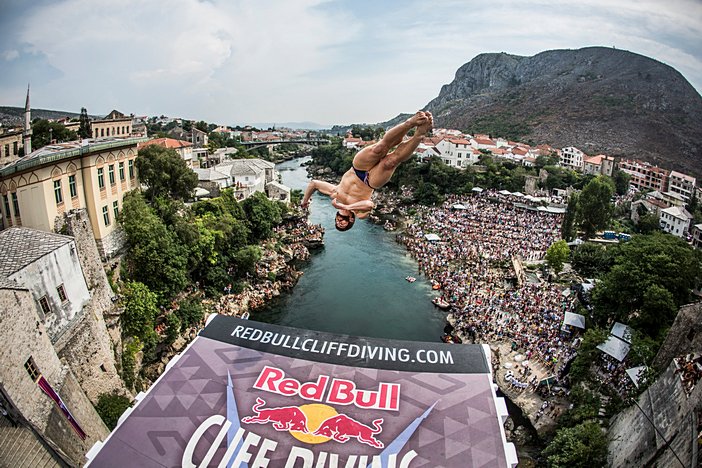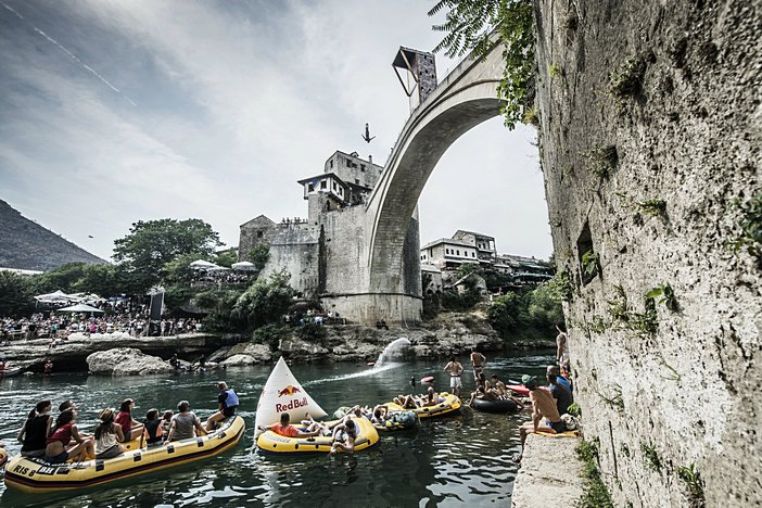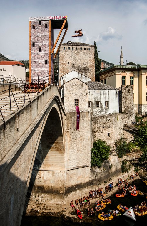 Classificada como Património Mundial da Humanidade pela UNESCO, a velha ponte de Mostar – na Bósnia e Herzegóvina – é um dos mais belos bilhetes postais do interior dos balcãs. Para além da pérola turística, este é um local com um significado muito especial para a comunidade dos atletas de saltos para a água de grande altura. A tradição de saltar desta ponte remonta ao século XVII e nos últimos anos tem sido mantida por algumas das estrelas do Red Bull Cliff Diving World Series: foi o próprio Orlando Duque – considerado o maior embaixador da modalidade – que “inaugurou” a ponte em 2004, quando esta foi reaberta após a conclusão do restauro decorrente da sua destruição parcial durante a guerra civil que assolou aquela região nos anos 90 do século passado.