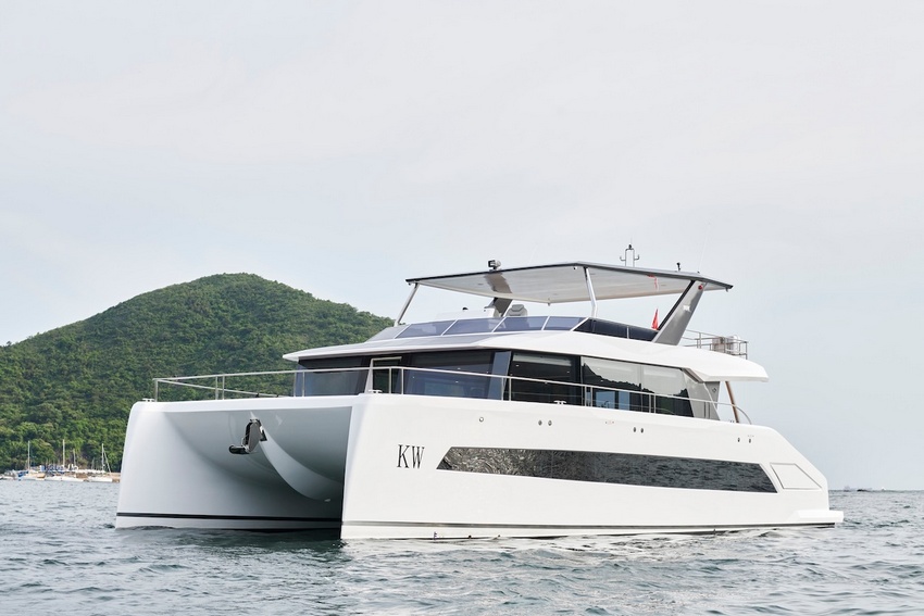 * O seu design de casco duplo e hidrodinâmica avançada garantem uma navegação extremamente suave e seca, mesmo a altas velocidades.