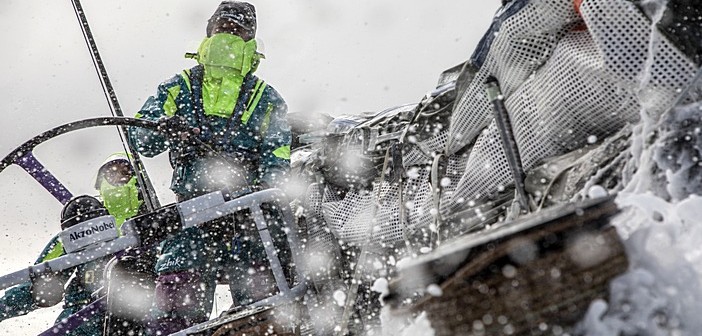 Um vento de nordeste de 20 a 30 nós, garante condições de navegação rápidas e velocidades similares para a frota dos Volvo 65s.