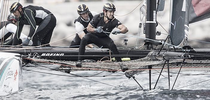 Muita emoção no primeiro dia da terceira etapa das Extreme Sailing Series TM, que decorre até Domingo, na Baía do Funchal. O SAP Extreme Sailing Team, com o neozelandês Adam Minoprio ao leme, está na liderança depois de realizadas seis regatas.
