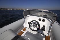 A opção por forrar o deck em teka sintética, torna o barco visualmente atractivo e o uso do Hipalon/Neoprene nos flutuadores dá-lhe conforto extra.
