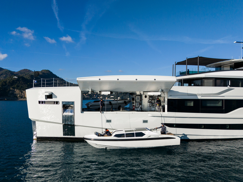 The owner’s passion for engineering is evident in a striking lower deck feature, which has been beautifully engineered by the Tankoa Yachts team – a guest corridor, with large panoramic windows into the spotless engine room, runs on the centerline between the beach club and the lower-deck guest accommodation.