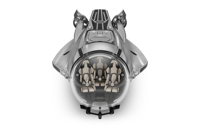 The ultra-luxury three-person submersible, which has a depth rating of 300 meters, is now the most flow-dynamic submersible the world has ever seen. Together with MARIN, the renowned Dutch maritime research institute specialising in computational flow dynamics, the top speed of the Super Sub was optimised from its initial 8-knot estimation up to as much as 10 knots. That is 3-4 knots faster than the top cruising speed of a bottlenose dolphin, and 7 knots faster than the average submersible.