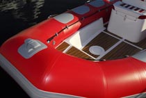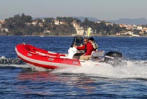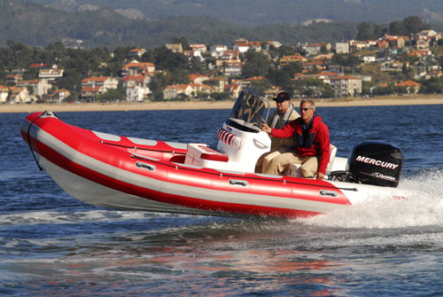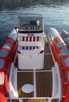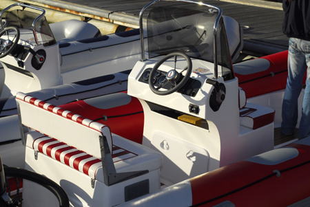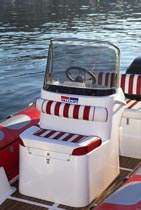 Mas é a navegar que este modelo mostra todo o seu potencial. Na saída da marina podemos logo testar a capacidade de manobra do conjunto tendo que se ter algum cuidado com a aceleração do motor que possui uma resposta muito instantânea. A navegar já em mar aberto o comportamento do conjunto é irrepreensível com o motor a responder bem a todas as solicitações. Quando apertámos mais com a velocidade o conjunto tornou-se mais instável talvez pela falta de algum peso a bordo visto estarmos apenas dois adultos. Esta reacção não é nada de alarmante apenas obriga a uma atenção redobrada. Ao nível do equipamento, a consola central cumpre bem protegendo o piloto e o acompanhante e com bastante espaço para instalação de instrumentos.