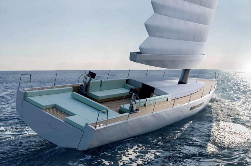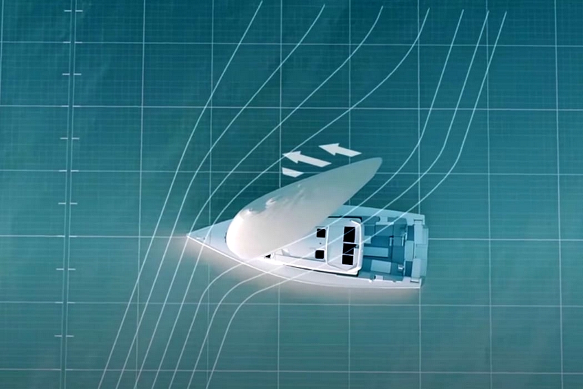 A vela WISAMO ajusta-se automaticamente ao rumo e à intensidade do vento, permitindo que a embarcação seja manobrada sem necessidade de conhecimentos técnicos avançados. A inclinação lateral pode ainda ser controlada para aumentar o conforto da navegação. Graças a estas tecnologias, o AQUA proporciona uma experiência de navegação sustentável, mantendo simultaneamente um design elegante e eficiente. O iate pode ainda aceder a áreas marinhas protegidas sem poluir ou perturbar o ecossistema.