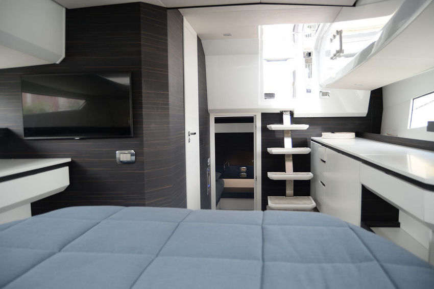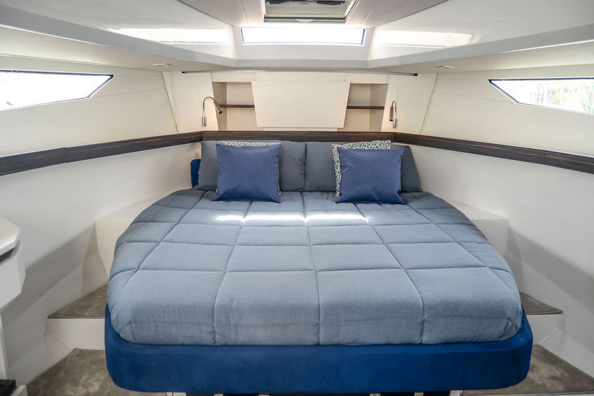 The Virage 40 GT, recently docked in Port Grimaud in the bay of St Tropez, has been meticulously designed by the Virage team to enhance the joyous and carefree nature of ownership. With a sleek design, exceptional performance, and spacious comfort, this 40-foot sport walk-around yacht offers sumptuous accommodation for up to four guests in two elegantly appointed guest cabins, complemented by a beautifully designed head with a separate shower. On deck, the yacht boasts ample entertaining space for up to ten people, featuring forward and aft sun pads, a dining table, and a wet bar equipped with a BBQ, sink, and ample refrigeration. With a top speed surpassing 40 knots, the Virage 40 GT is perfectly suited for cruising the French Riviera, the Balearic Islands, and the Florida Keys—providing owners with unforgettable experiences, made possible through the Virage Circle.